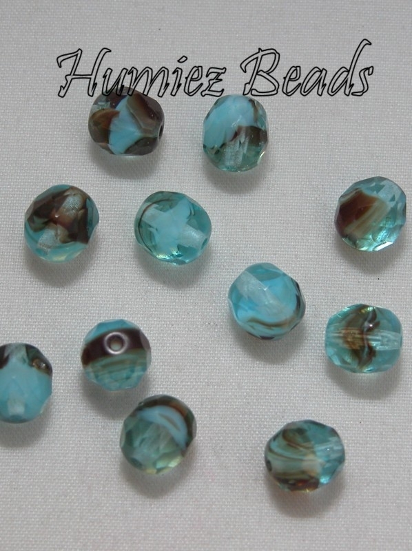 03155 Tsjechische glaskraal Blauw/bruin 8mm 11 stuks