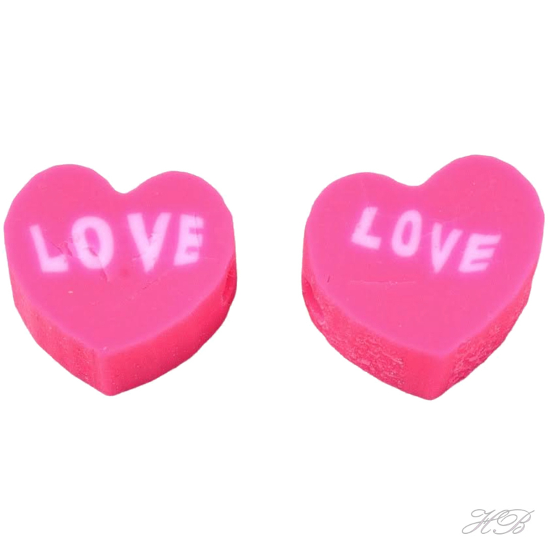 00455 Fimokraal Hartje LOVE Hot Pink 8x9x4,5mm; gat 1,8mm ±12 stuks