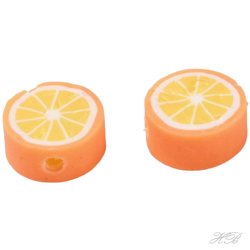 00677 Fimokraal Sinaasappel schijfje Oranje 10x4,5mm; gat 1,8mm ±12 stuks